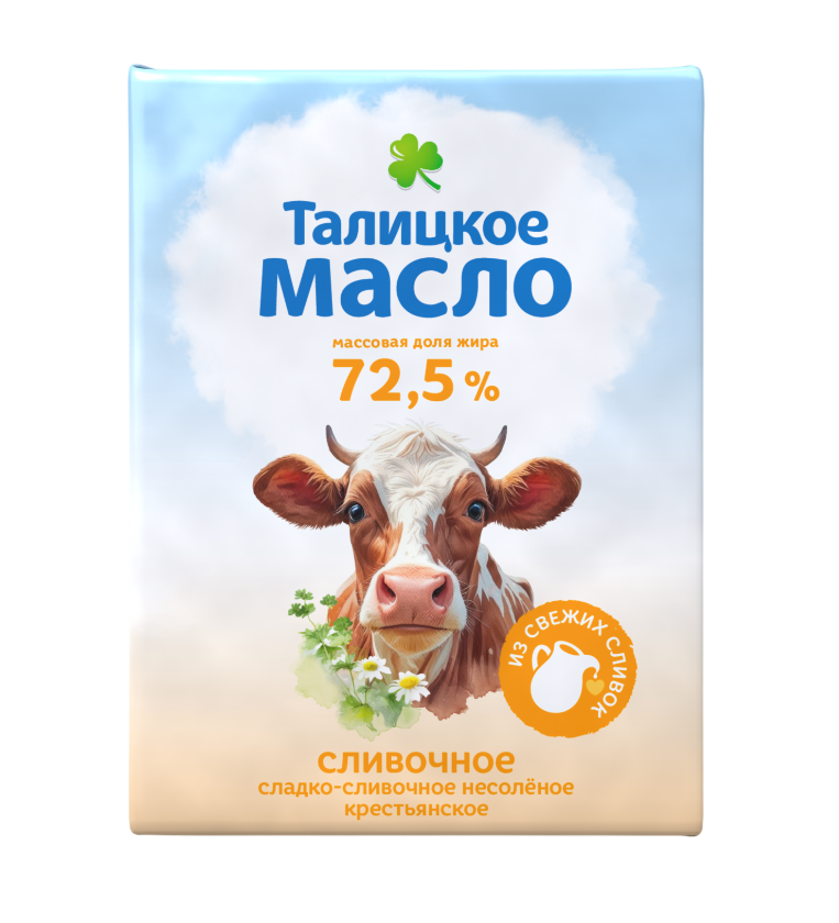 Масло сладко-сливочное Талицкое 180г 72,5% пергамент