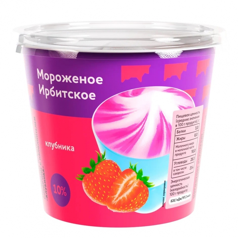 Мороженое Ирбитское сливочное 10% 100г Клубника пластиковый стаканчик