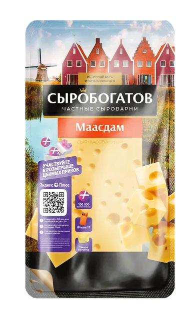 Сыр Сыробогатов Маасдам 125г 45% нарезка