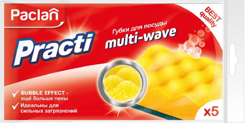 Губки д/посуды Паклан Практи Мульти-Вэйв 5шт 409152/409153