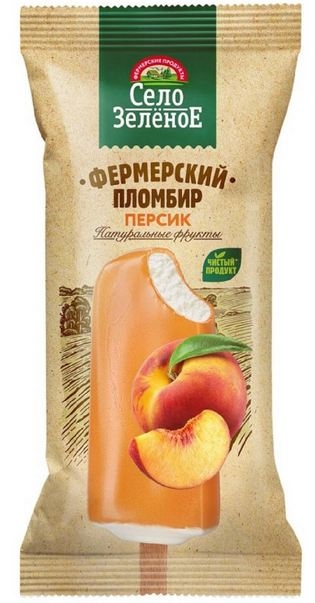 Мороженое Село Зеленое Эскимо пломбир 15% 70г с ароматом персика во фруктовой глазури