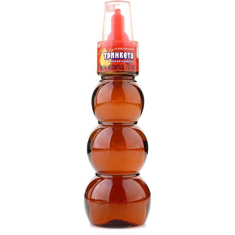 Тринкета – жидкая конфета со вкусом колы. Безалкогольный негазированный напиток. Состав: вода, сахар, регулятор кислотности: лимонная кислота, ароматизатор кола, консерванты: Е202, Е211, краситель Е150d. Пищевая и энергетическая ценность: белки – 0,1г, жиры – 0,1г, углеводы 10г; 40ккал. Хранить при температуре до +30оС и относительной влажности воздуха не более 75 %. Срок годности 18 месяцев.