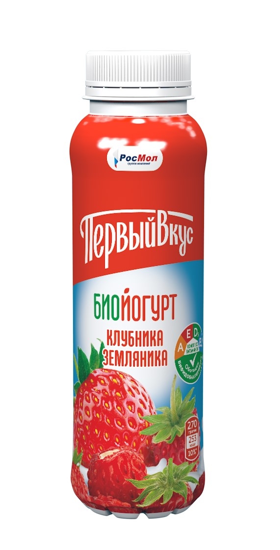 Биойогурт Первый вкус 270г 2,5% клубника/земляника бутылка