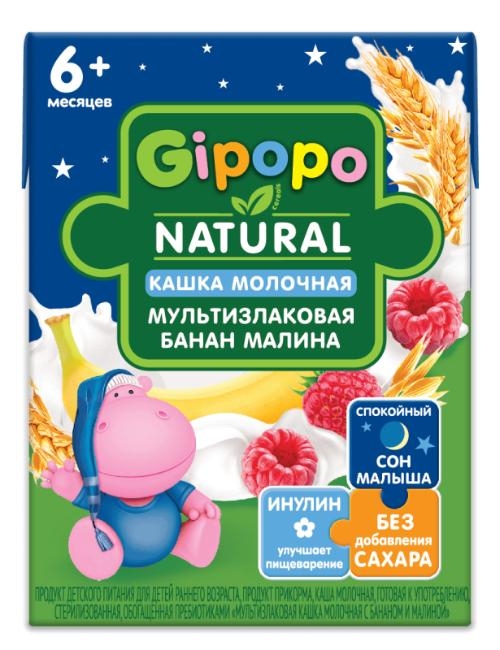 Кашка Гипопо 200мл молочная мультизлаковая банан/малина т/п