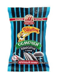 Семечки от Мартина премиум полосатые отборные обжаренные с солью. Состав: обжаренные семена подсолнечника, соль. Пищевая и энергетическая ценность на 100г: белки 15г, жиры 27г, углеводы 3,5г; 320ккал. Хранить в чистых, хорошо вентилируемых помещениях , не зараженных вредителями хлебных запасах, защищенных от прямых солнечных лучей при температуре не выше +25оС и относительной влажности воздуха не более 75%. Срок годности 8 месяцев.