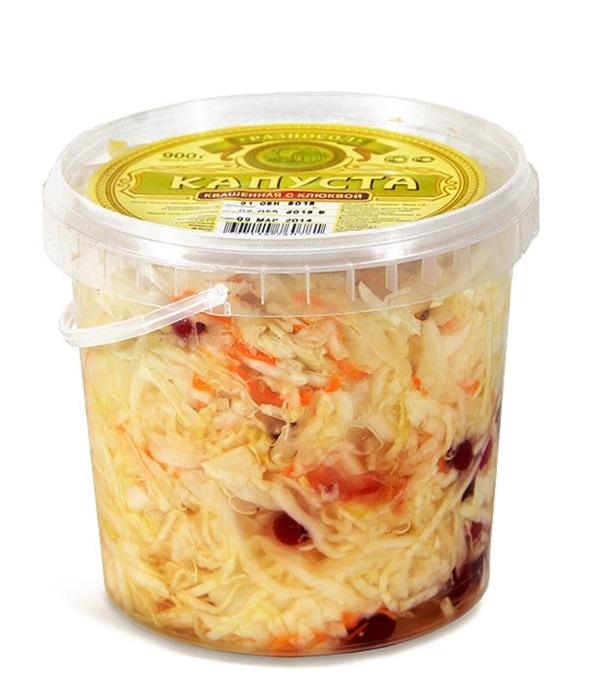 Состав: капуста белокочанная, морковь, клюква, соль, бензоат натрия. Пищевая и энергетическая ценность в 100г: белки 1,7г, жиры 0,1г, углеводы 4,7г; 27ккал. Хранить при температуре от 0°С до +6°С. Срок годности 90 суток.