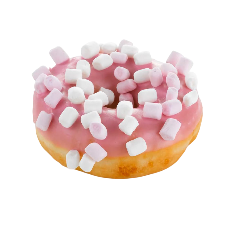 Состав: мука пшеничная хлебопекарная высшего сорта, вода питьевая, жиры кондитерские (растительные масла рафинированные дезодорированные: пальмовое, пальмовый олеин, подсолнечное), полуфабрикат: глазурь (сахар, жир специального назначения (пальмоядровое масло, пальмовое масло, антиокислитель Е306), сухая молочная сыворотка, сухое обезжиренное молоко, фракция масла растительного (средняя фракция пальмового масла, эмульгатор: лецитины (соя), антиокислитель Е306, регулятор кислотности: лимонная кислота), эмульгатор: лецитины (соя), натуральный ароматизатор), изделия кондитерские сахаристые: маршмеллоу с ароматом ванили (патока крахмальная, сахар, вода питьевая, декстроза, крахмал кукурузный, желатин, ароматизатор, краситель: кармины), сироп глюкозно-фруктозный, смесь сухая для дрожжевых пончиков (мука соевая обезжиренная, эмульгаторы (Е471, Е481, лецитины (соя)), соль, загустители (Е412, Е1422), мука пшеничная, регулятор кислотности: Е450i, разрыхлитель: E500ii, ароматизатор, краситель: к