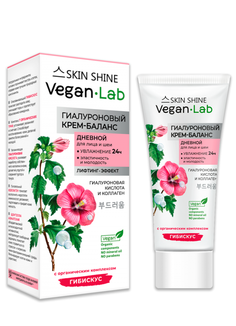Крем-баланс для лица/шеи Веган-Лаб 60мл гиалуроновый дневной гибискус