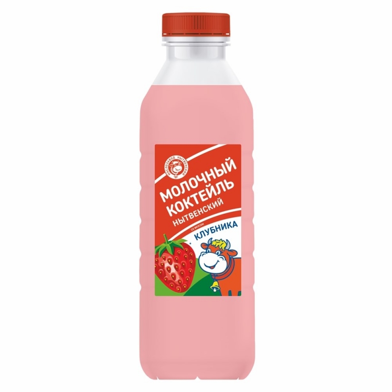 Молочный коктейль Нытвенский 0,8л 2,5% клубника бутылка