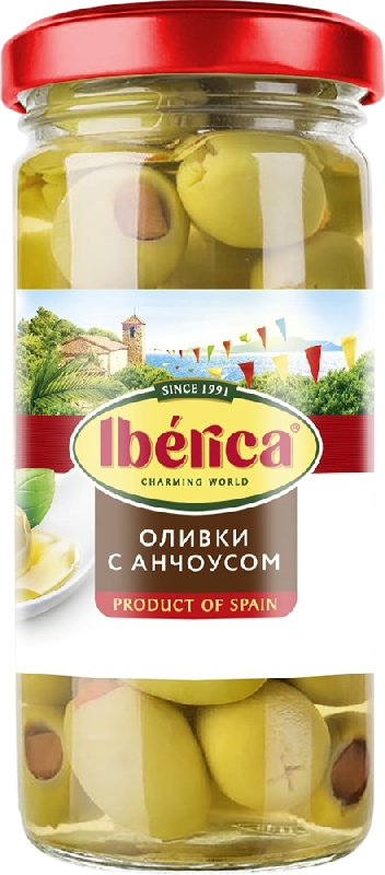 Состав: зеленые оливки, паста из анчоусов 14% (вода, анчоусы, стабилизатор Е401, Е415, отвердитель Е509, ароматизатор), соль, усилитель вкуса Е621, регуляторы кислотности Е330, антиокислитель Е300. Пищевая и энергетическая ценность в 100г: белки 1,6г, жиры 15г, углеводы 0,5г; 143ккал. Хранить при температуре от +5°С до +25°С. Срок годности 36 месяцев.
