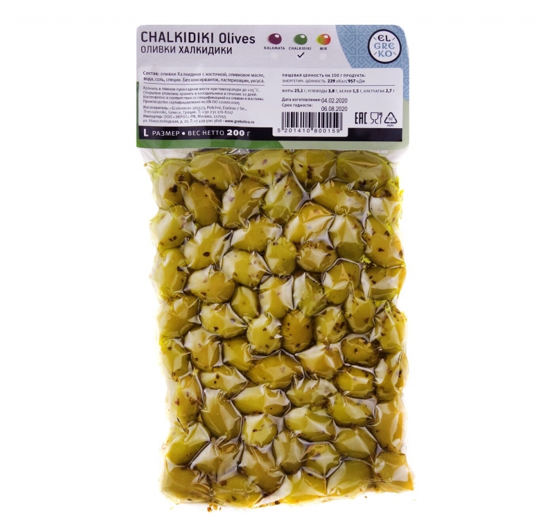 Оливки Эль Греко 200г Халкидики с косточкой в/у