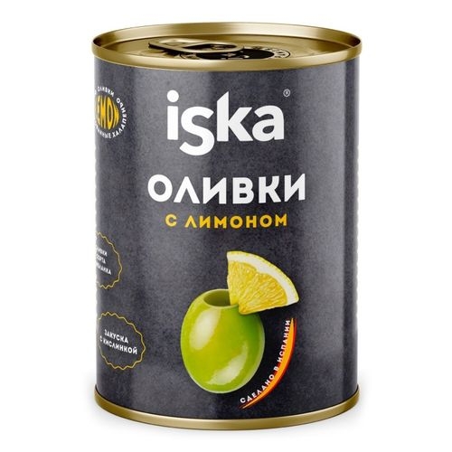 Оливки без косточек, фаршированные пастой из лимона. Состав: зеленые оливки, вода, лимонная паста (вода, лимон, загуститель Е401), соль, усилитель вкуса и аромата глутамат натрия, регулятор кислотности лимонная кислота, антиокислитель аскорбиновая кислота. Пищевая и энергетическая ценность в 100г: белки 1г, жиры 15г, углеводы 0г; 145ккал. Хранить при температуре от 0°С до +25°С. Срок годности 4 года. Объем: 300мл. Масса нетто: 280г.