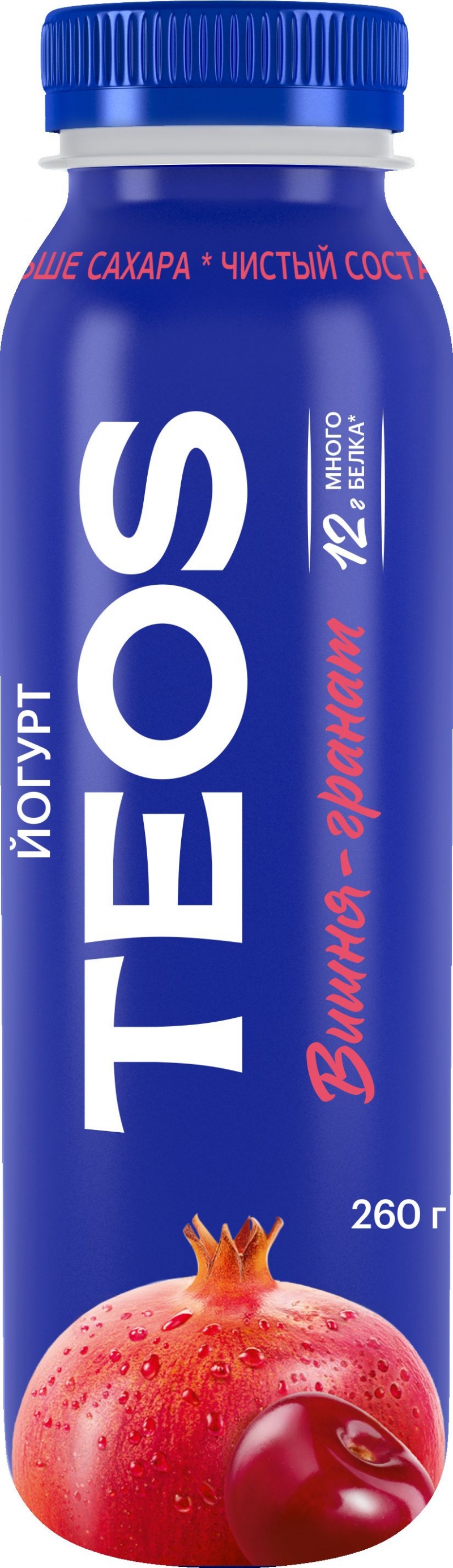 Йогурт Теос Актив 260г 1,8% вишня/гранат бутылка